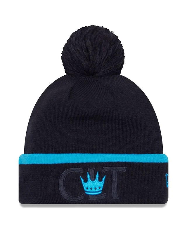 Men's New Era Black Charlotte Fc Wordmark Kick Off Cuffed Knit Hat with Pom