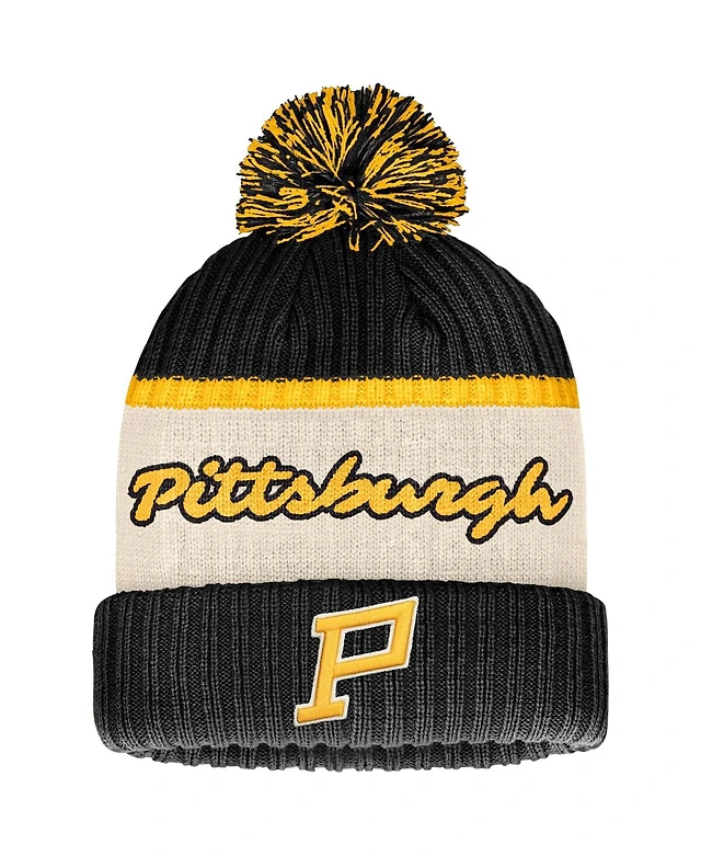 Men's Nike Black/Yellow Pittsburgh Pirates Cooperstown Collection Peak Standard Cuffed Knit Hat with Pom