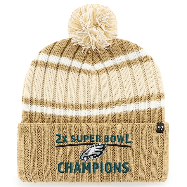 Men's '47 Khaki Philadelphia Eagles Two-Time Super Bowl Champions Plateau Cuffed Knit with Pom