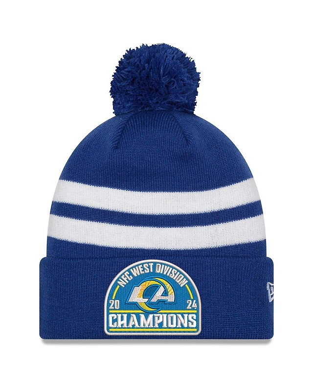 New Era Men's Royal Los Angeles Rams 2024 Nfc West Division Champions Striped Cuffed Knit Hat with Pom