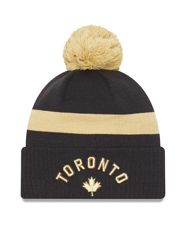 Men's New Era Black Toronto Raptors 2022/23 City Edition Official Cuffed Pom Knit Hat