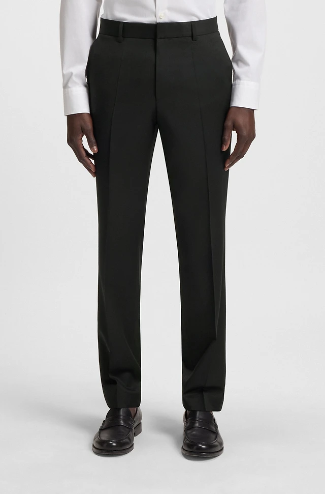 Extra Slim Black Wool-Blend Drawstring Washable Modern Tech Dress Pant
