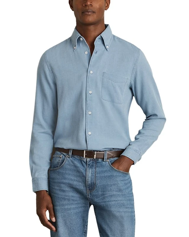 Minoa Chambray Piqué Jersey Button Down Shirt