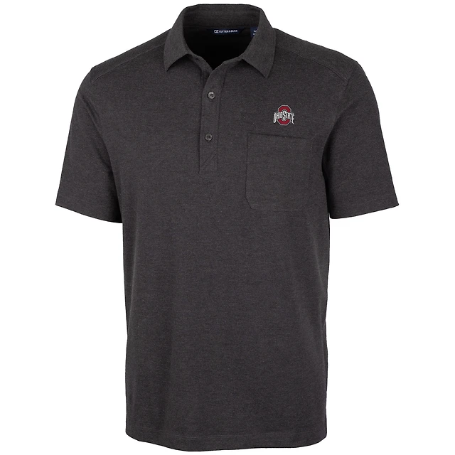 Men's Cutter & Buck Heather Black Ohio State Buckeyes Advantage Jersey Polo