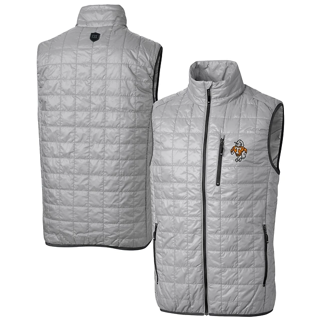 Men's Cutter & Buck Gray Howard Bison Big & Tall Rainier PrimaLoft Eco Full-Zip Puffer Vest