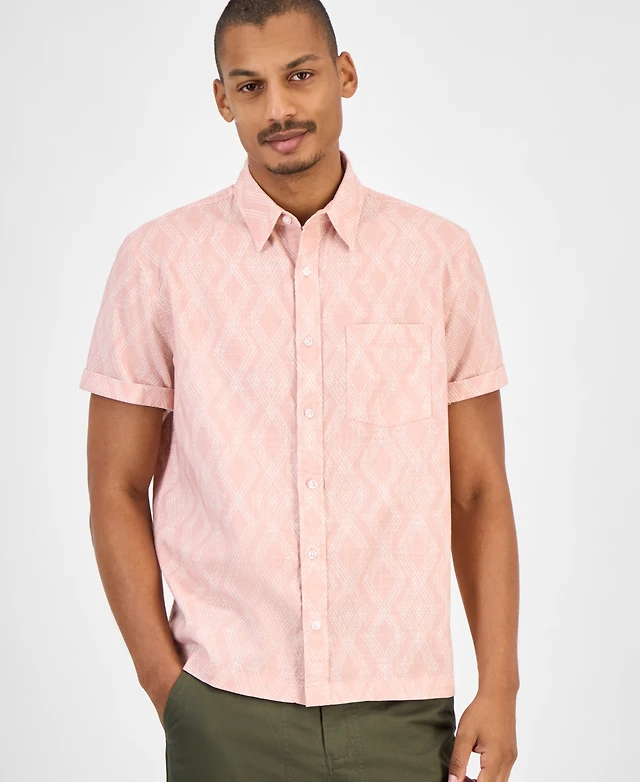 Club Room Men's Medallion-Print Camp Collar Short-Sleeve Shirt, Macy's Exclusive