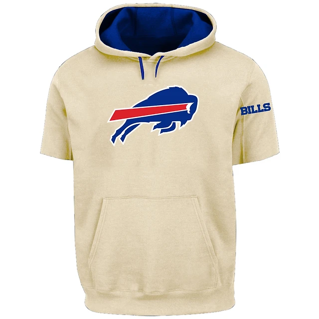 Men's Profile Oatmeal Buffalo Bills Big & Tall Chest Print and Logo Short Sleeve Pullover Hoodie
