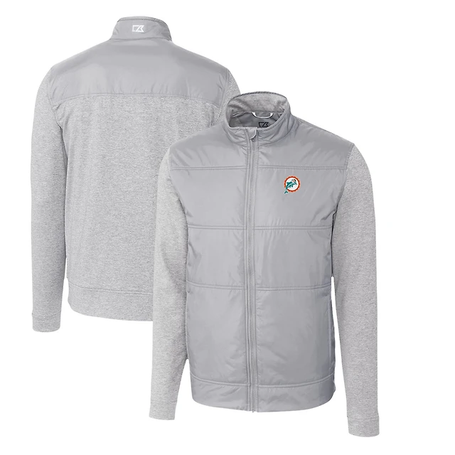 Men's Cutter & Buck Gray Miami Dolphins Throwback Logo Stealth Hybrid Quilted Full-Zip Windbreaker Jacket