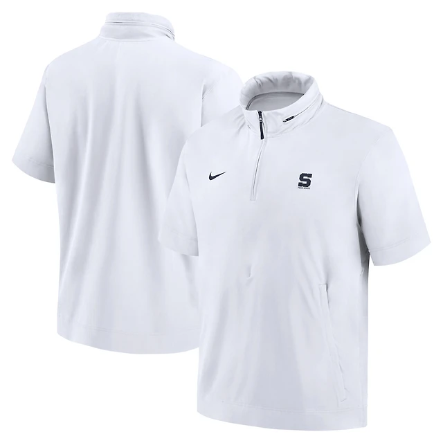 Men's Nike White Penn State Nittany Lions 2024 Sideline Coach Short Sleeve Half-Zip Hoodie Jacket
