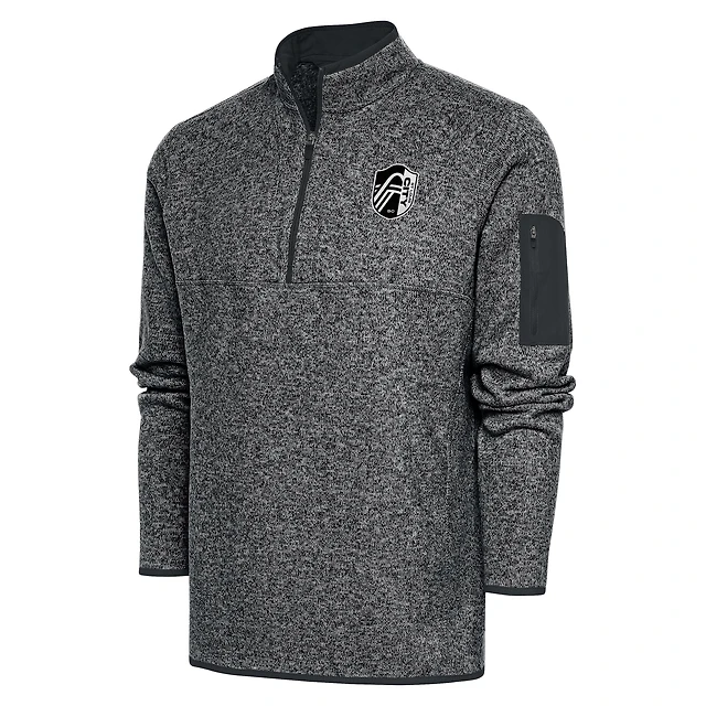 Men's Antigua Heather Charcoal St. Louis City SC Brushed Metallic Logo Fortune Quarter-Zip Pullover Jacket