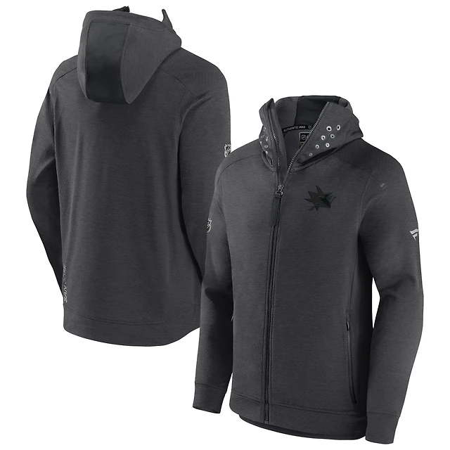 Men's Fanatics Heather Charcoal San Jose Sharks Authentic Pro Road Tech Lightweight Full-Zip Hoodie Jacket