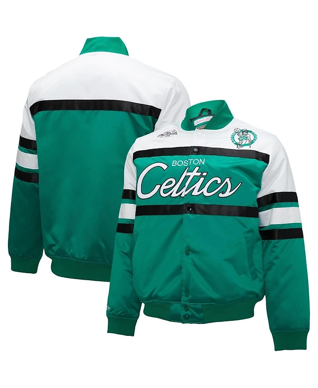 Men's Mitchell & Ness Kelly Green, White Boston Celtics Big and Tall Heavyweight Full-Snap Satin Jacket