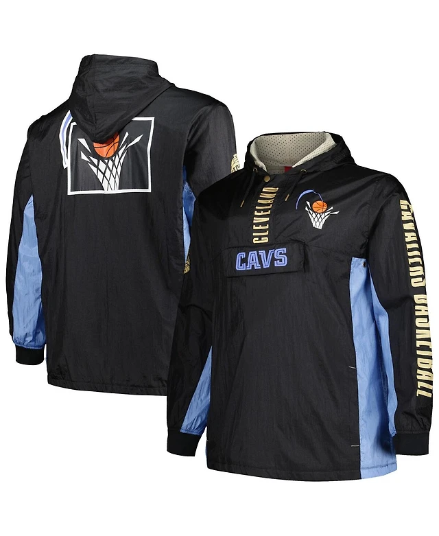 Mitchell & Ness Men's Black Cleveland Cavaliers Big Tall Hardwood Classics Team Og 2.0 Anorak Hoodie Quarter-Zip Windbreaker Jacket