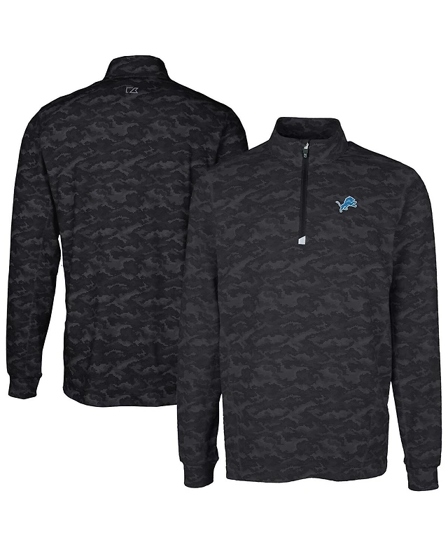 Cutter & Buck Men's Black Detroit Lions Big Tall Traverse Eco Camo Tri-Blend DryTec Quarter-Zip Jacket