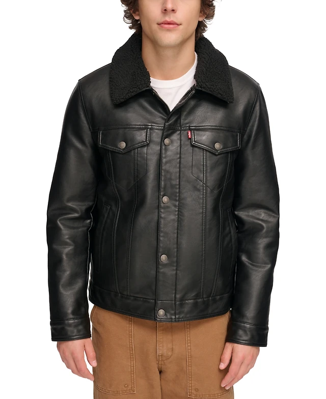 Mode of One Men's Relaxed-Fit Faux-Sherpa-Collar Faux-Leather Bomber Jacket, Macy's Exclusive