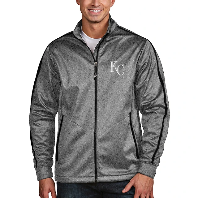 Men's Antigua Heathered Charcoal Los Angeles Angels Fortune Full-Zip Jacket