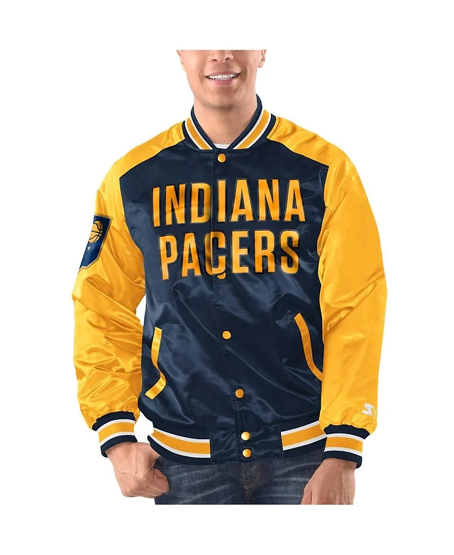 Starter Men's Navy/Gold Denver Nuggets Renegade Satin Full-Snap Varsity Jacket