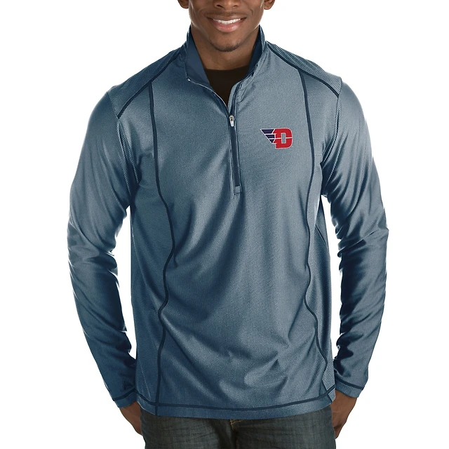 Men's Antigua Heather Navy New York Giants Throwback Fortune Quarter-Zip Pullover Jacket