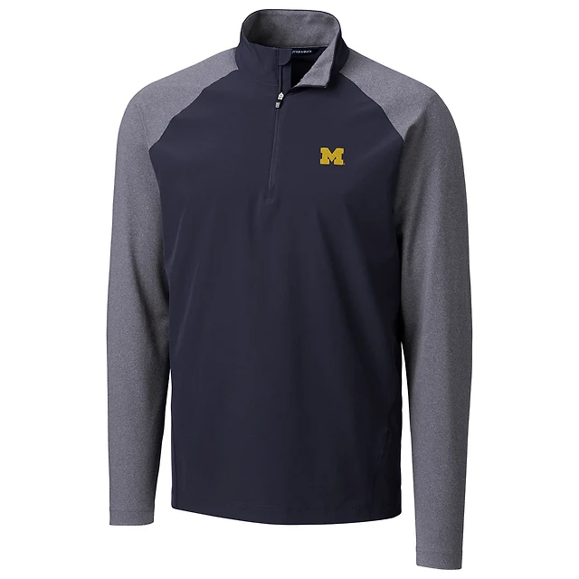 Mitchell & Ness Men's Navy Michigan Wolverines Anorak Vintage Logo Half-Zip Hoodie Jacket