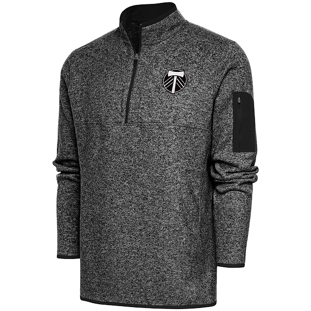 Men's Antigua Heather Black Portland Timbers Brushed Metallic Big & Tall Fortune Quarter-Zip Jacket