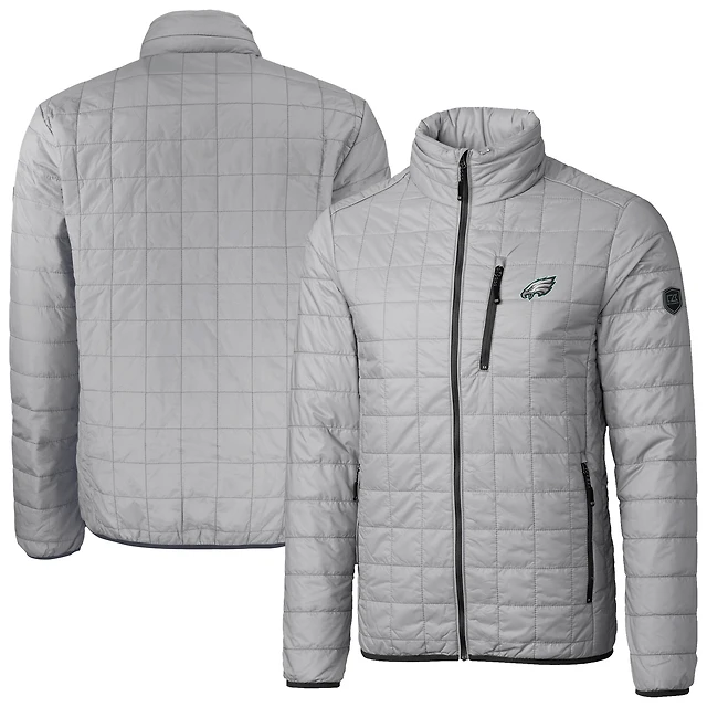 Men's Cutter & Buck Gray Philadelphia Eagles Rainier PrimaLoft Eco Insulated Full-Zip Puffer Jacket