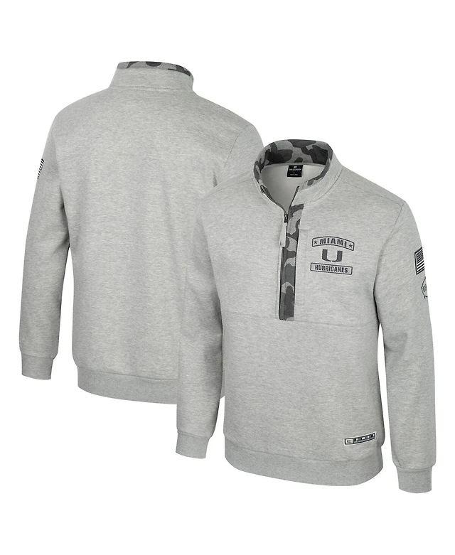 Colosseum Men's Heather Gray Miami Hurricanes Oorah Oht Military Appreciation Fleece Quarter-Zip Jacket