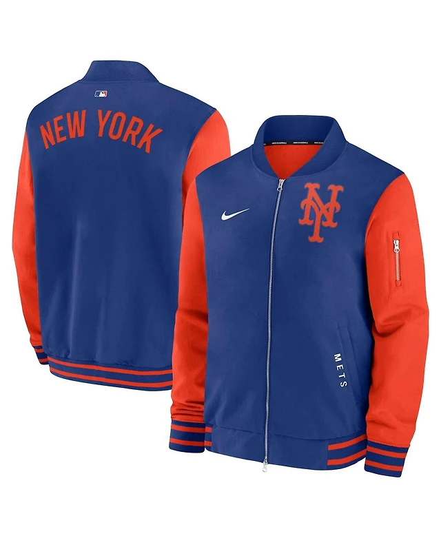 Nike Men's Royal/Orange New York Mets Authentic Collection Dugout Full-Zip Bomber Jacket