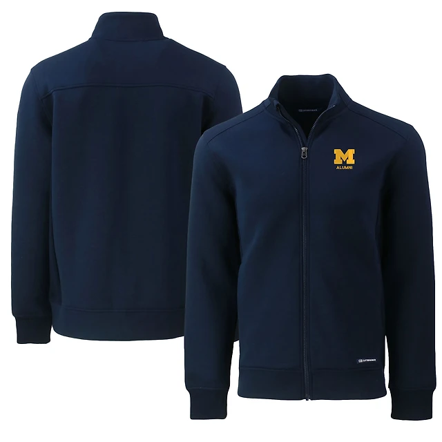 Men's Cutter & Buck Gray Michigan Wolverines Adapt Eco Knit Hybrid Recycled Full-Zip Jacket