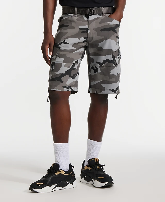 Galaxy By Harvic Men's Belted Cargo Shorts with Twill Flat Front Washed Utility Pockets