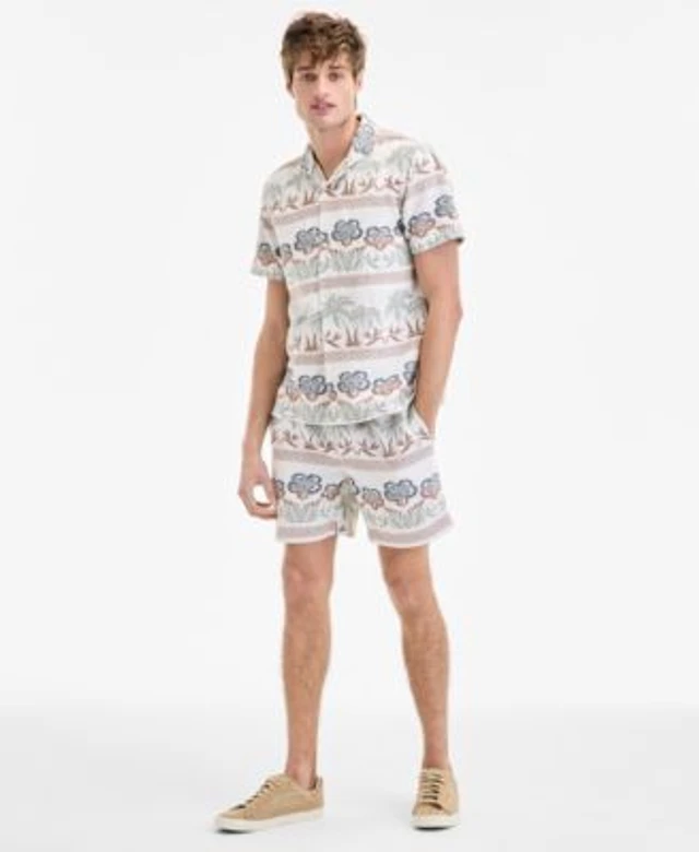 A|X Armani Exchange Men's Drawstring Palm Tree Print 9" Bermuda Shorts