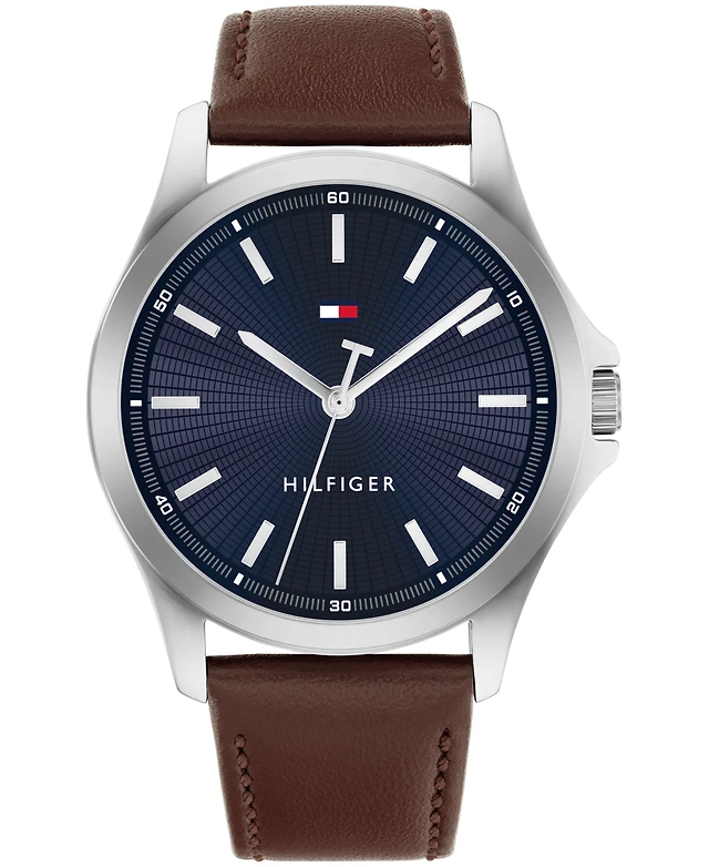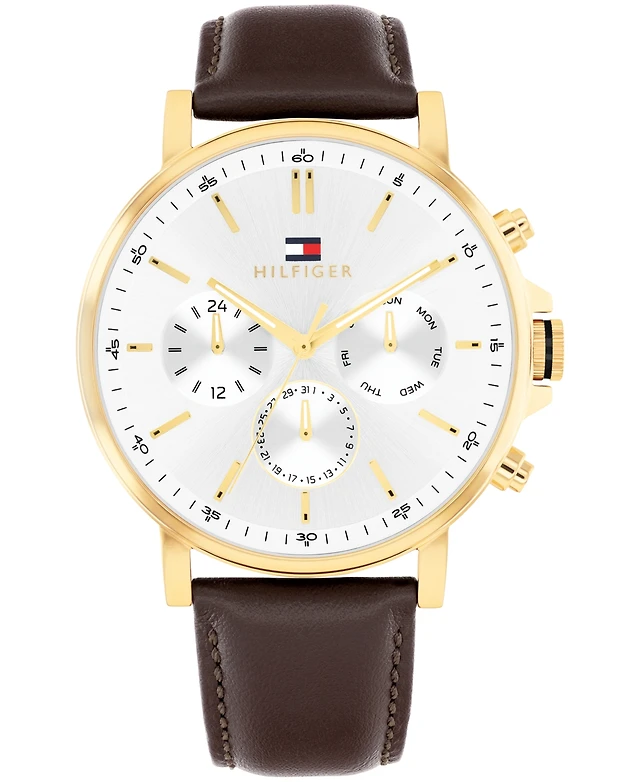 Tommy Hilfiger Men's Multifunction Dark Brown Leather Strap Watch, 42mm