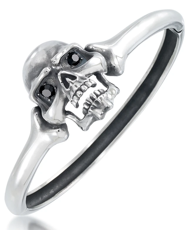 Andrew Charles by Andy Hilfiger Men's Black Cubic Zirconia Skull Bangle Bracelet in Stainless Steel
