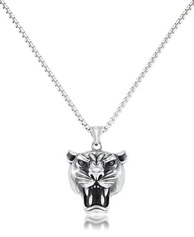Andrew Charles by Andy Hilfiger Men's Panther Head 24" Pendant Necklace in Stainless Steel