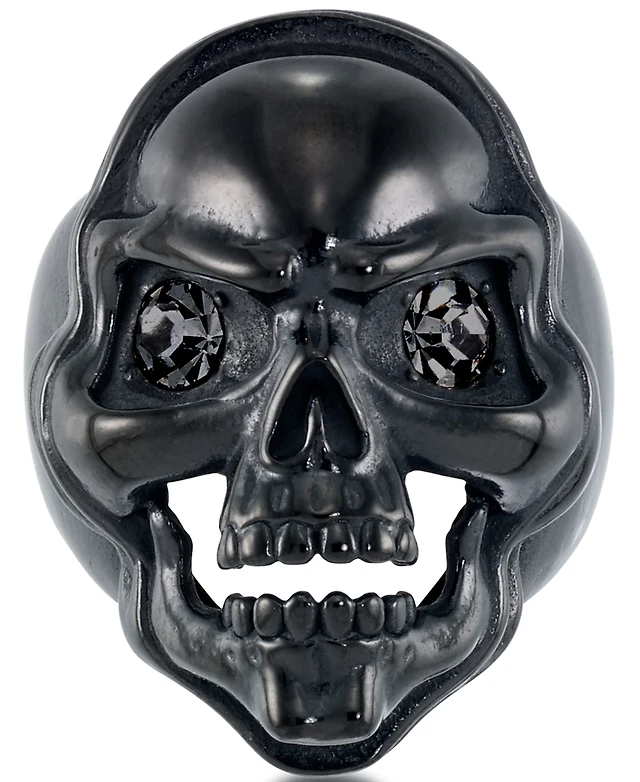Andrew Charles by Andy Hilfiger Men's Cubic Zirconia Skull Ring Black Ion-Plated Stainless Steel