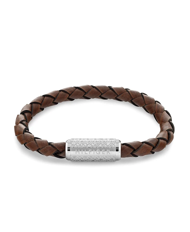 Tommy Hilfiger Men's Braided Tobacco Leather Bracelet