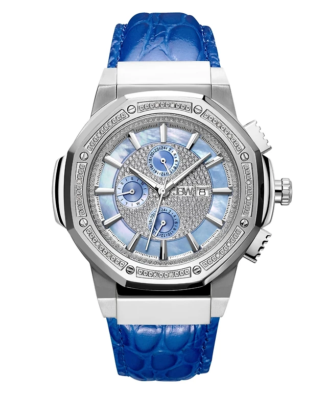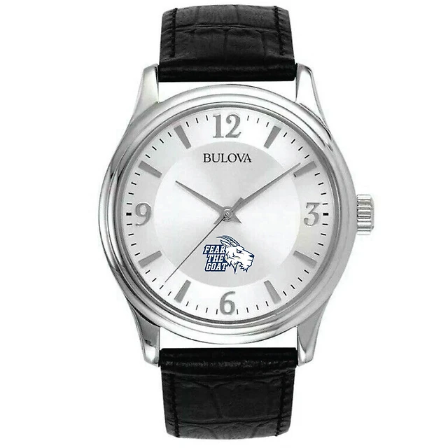 Men's Kaskaskia College Blue Devils Bulova Silver-Tone Stainless Steel Watch with Leather Strap