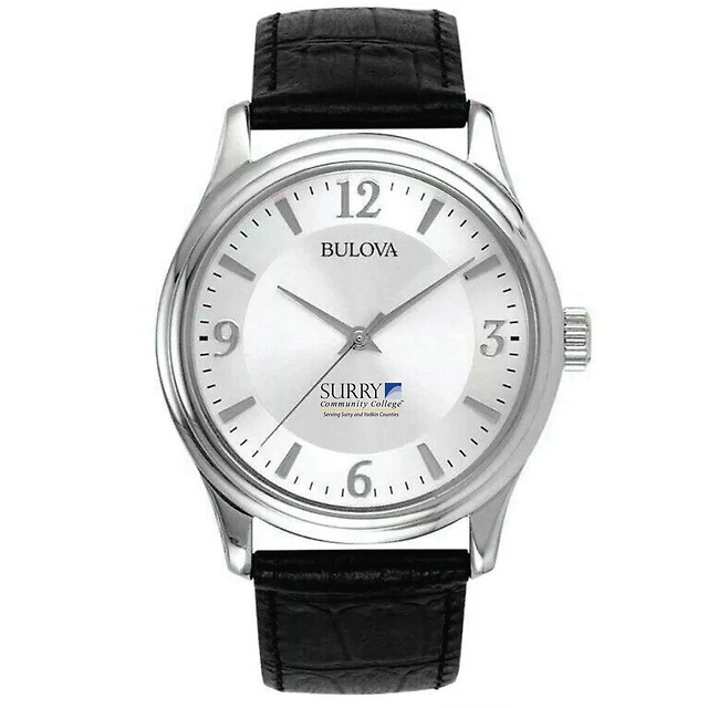 Men's SUNY Jamestown Community College Bulova Silver-Tone Stainless Steel Watch with Leather Strap