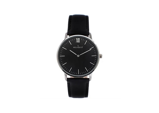 Roman Genuine Leather Silver Tone & Black Men's Watch 1292BROL