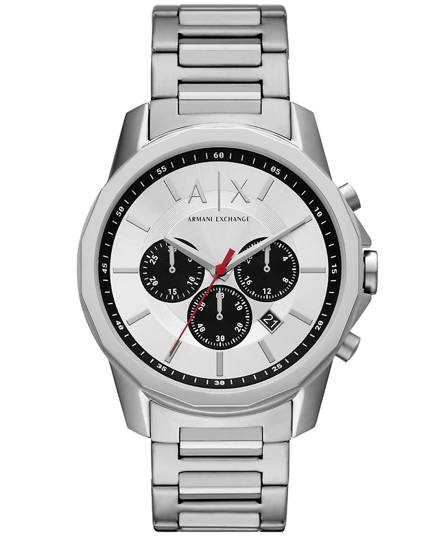 A|X Armani Exchange Men's Quartz Three-Hand Day-Date Silver Stainless-Steel Watch, 44mm