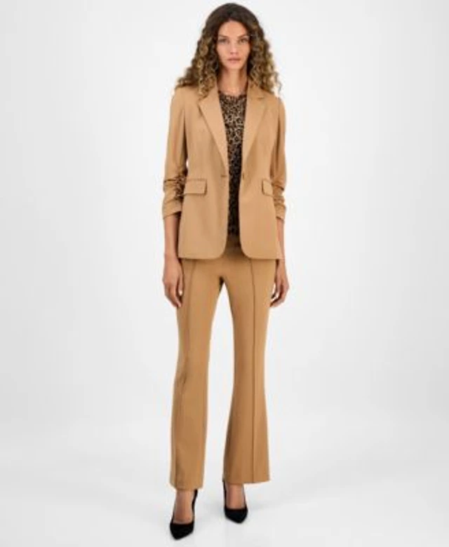 Bar Iii Womens One Button Scrunched Sleeve Jacket Leopard Print Short Sleeve Mesh Top High Rise Flared Leg Pants Macys Exclusive