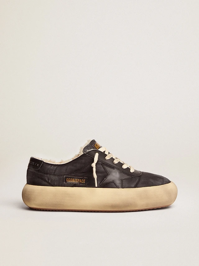 Women's Space-Star shoes in quilted black nylon with shearling lining