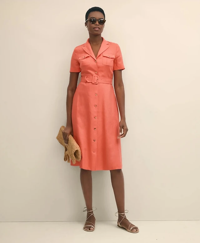 Belted Silk Midi Shirt Dress