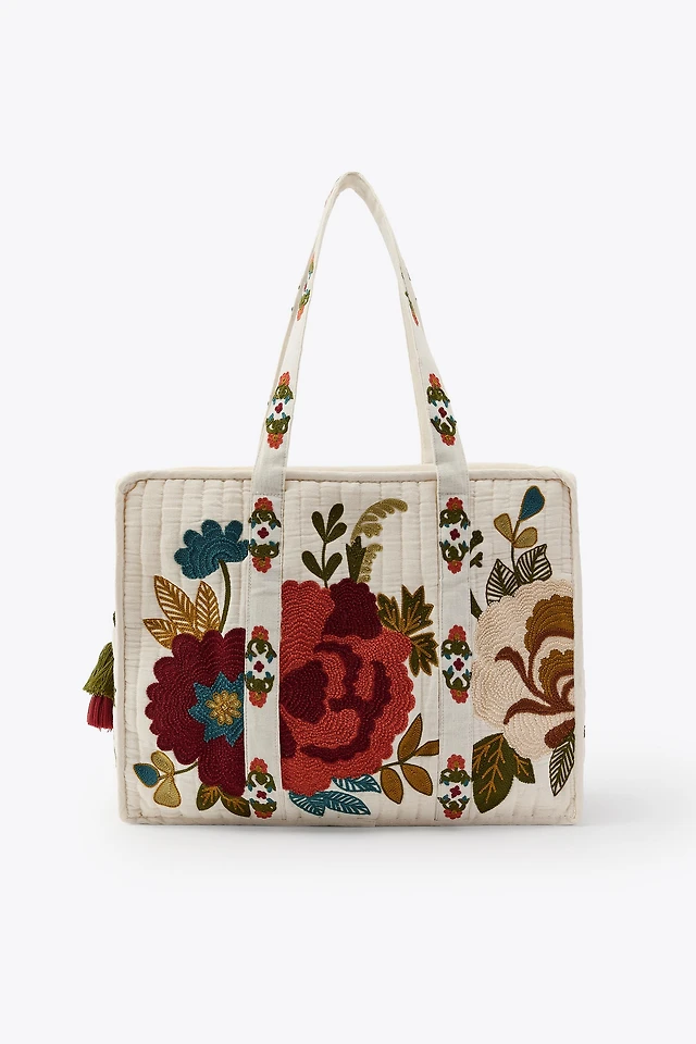 EMBROIDERED FLORAL PRINT MAXI BAG