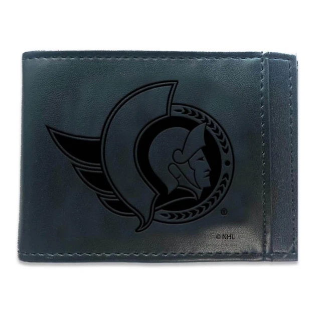 Black Ottawa Senators Hybrid Leather Front Pocket Bi-Fold Wallet with Money Clip
