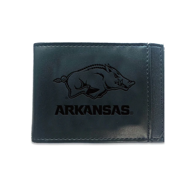 Black Arkansas Razorbacks Hybrid Leather Front Pocket Bi-Fold Wallet with Money Clip