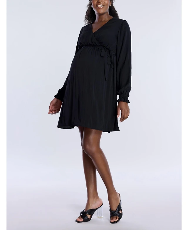 Motherhood Maternity Woven Wrap Long Sleeve Mini Dress