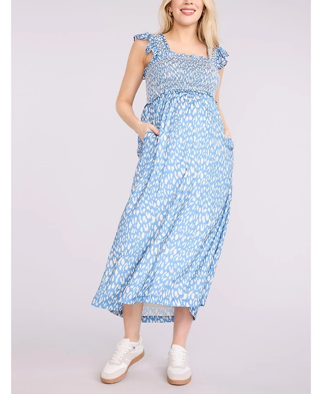 Women's Sleeveless Ruffle Shoulder Smocked Maxi Dress - Motherhood Maternity