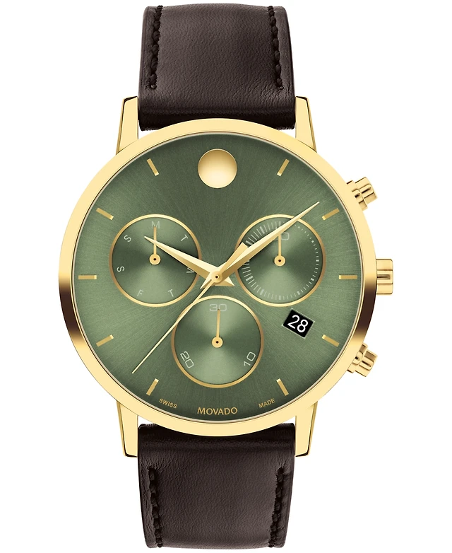 Movado Men's Museum Classic Swiss Quartz Brown Genuine Leather Strap Watch 40mm