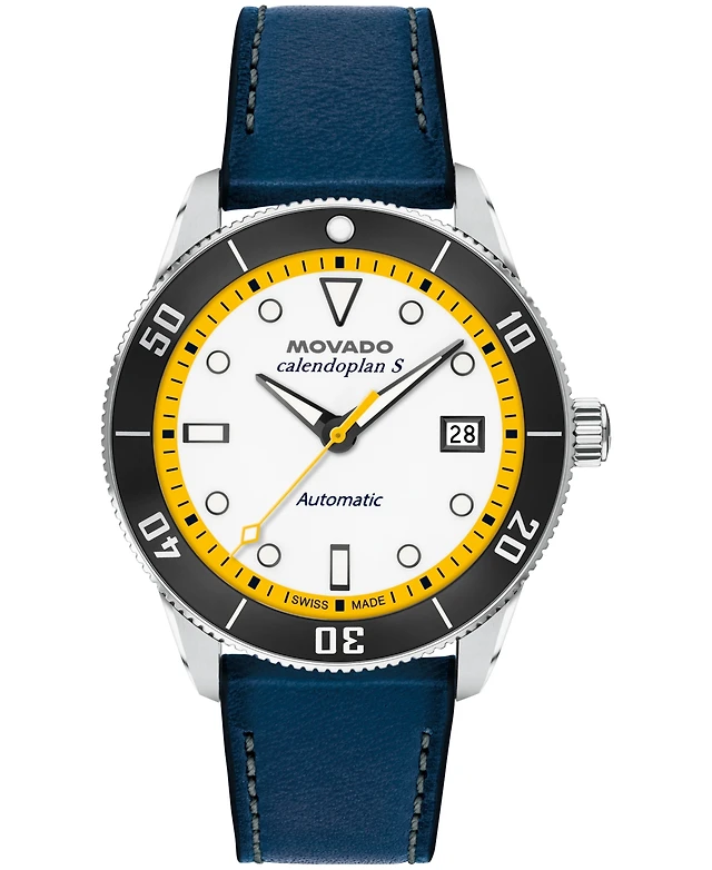 Movado Men's Calendoplan S Swiss Automatic Blue Leather Watch 40mm
