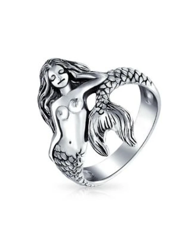 Bling Jewelry Nautical Marine Life Tropical Beach Siren Mermaid Ring For Women Oxidized .925 Sterling Silver 2mm Band
